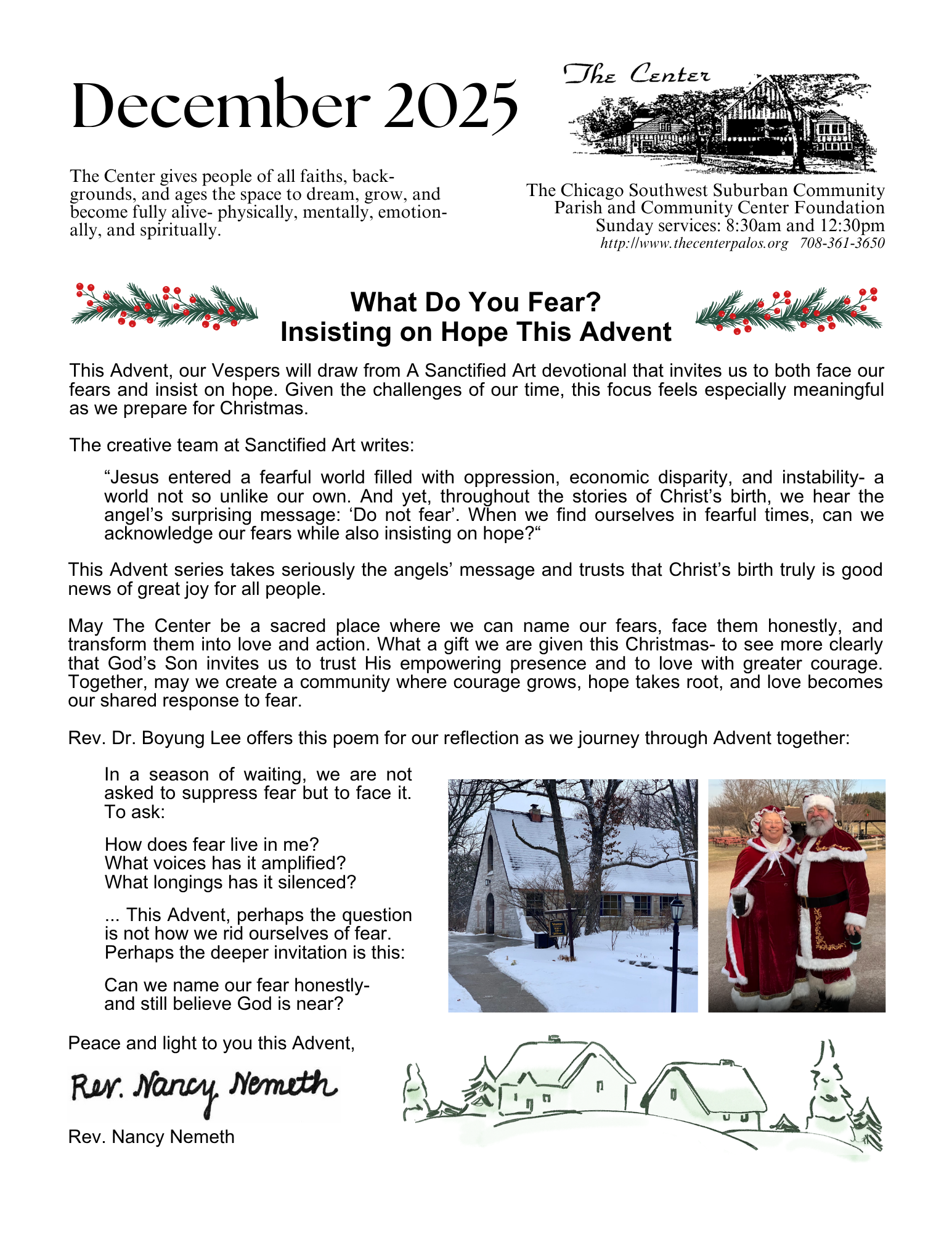 The Center's mission is to give people of all faiths, backgrounds, and ages the space to dream, grow, and become fully alive—physically, mentally, emotionally, and spiritually.