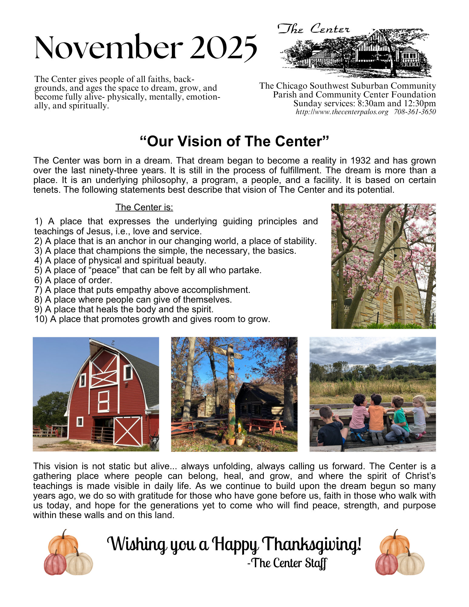 The Center's mission is to give people of all faiths, backgrounds, and ages the space to dream, grow, and become fully alive—physically, mentally, emotionally, and spiritually.